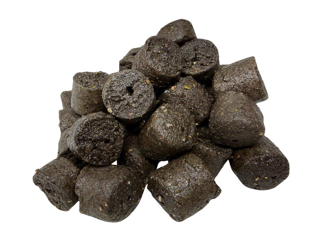 Boosterované pelety FISH IT Black Halibut s dírkou jsou vysoce atraktivní rybářské pelety s rybím základem.