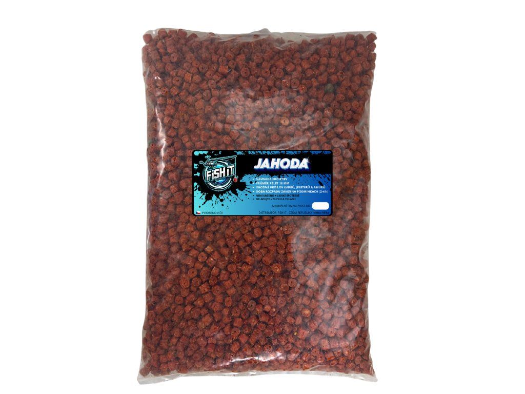 Boosterované pelety FISH IT Jahoda s dírkou jsou rybářské pelety se sladkou jahodovou příchutí, určené pro rychlé zatraktivnění krmného místa i přímé použití jako nástraha.